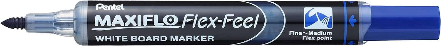 Pentel Maxiflo Flex-Feel Rotulador para Pizarra Blanca - Punta Flexible 4.6mm - Trazo de 1 a 5mm - Dosificacion de Tinta mediante Embolo - Color Azul - Cantidad: 12