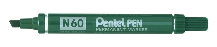 Pentel Pen N60 Rotulador Permanente - Punta Biselada Resistente y Duradera - Resistente a Agua y Luz - Color Verde - Cantidad: 12