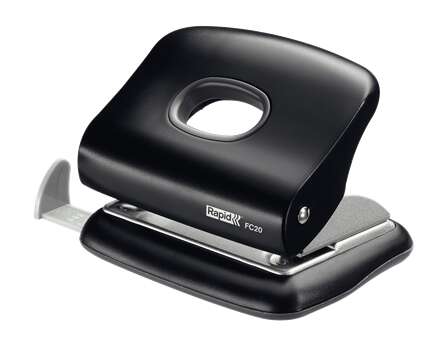 Rapid FC20 Taladro Perforador - Hasta 20 Hojas - Facil Vaciado - Punzones 5.5mm - Color Negro