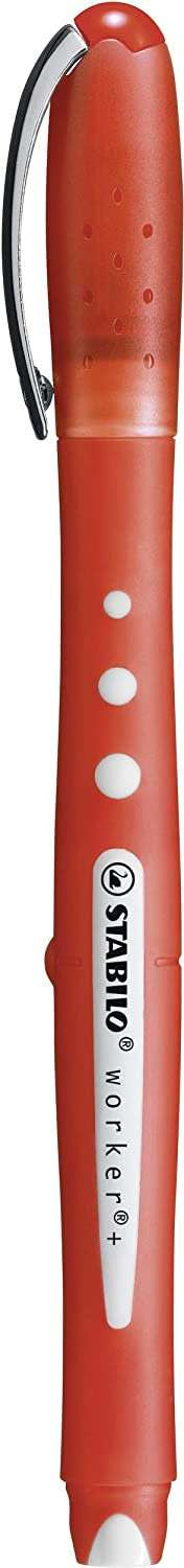 Stabilo Worker+ Colorful Boligrafo de Tinta Liquida - Trazo 0.5mm - Escritura Suave y Precisa - Cuerpo Entero de Caucho - Color Rojo - Cantidad: 10