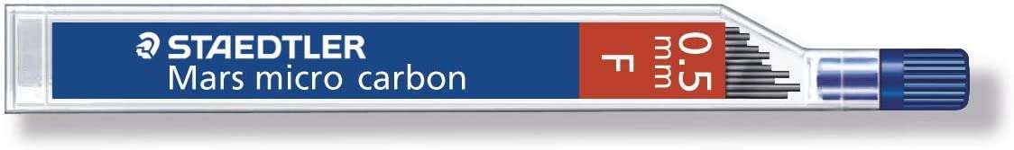 Staedtler Mars Micro Carbon 250 Tubo de 12 Minas de Grafito - Dureza F - Trazo 0.5mm - Alta Resistencia - Cantidad: 12